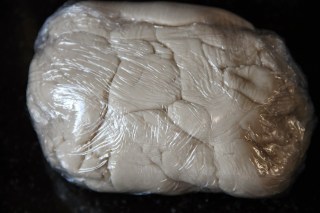 Placer la pâte dans un film alimentaire,et mettre au réfrigérateur pendant 1 heure.