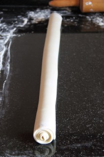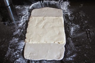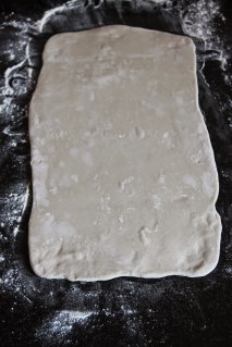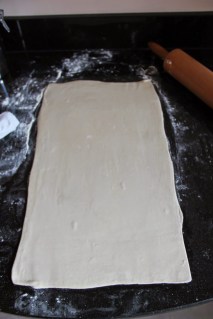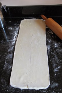 Étaler la pâte en un rectangle 3 fois plus long que large.
