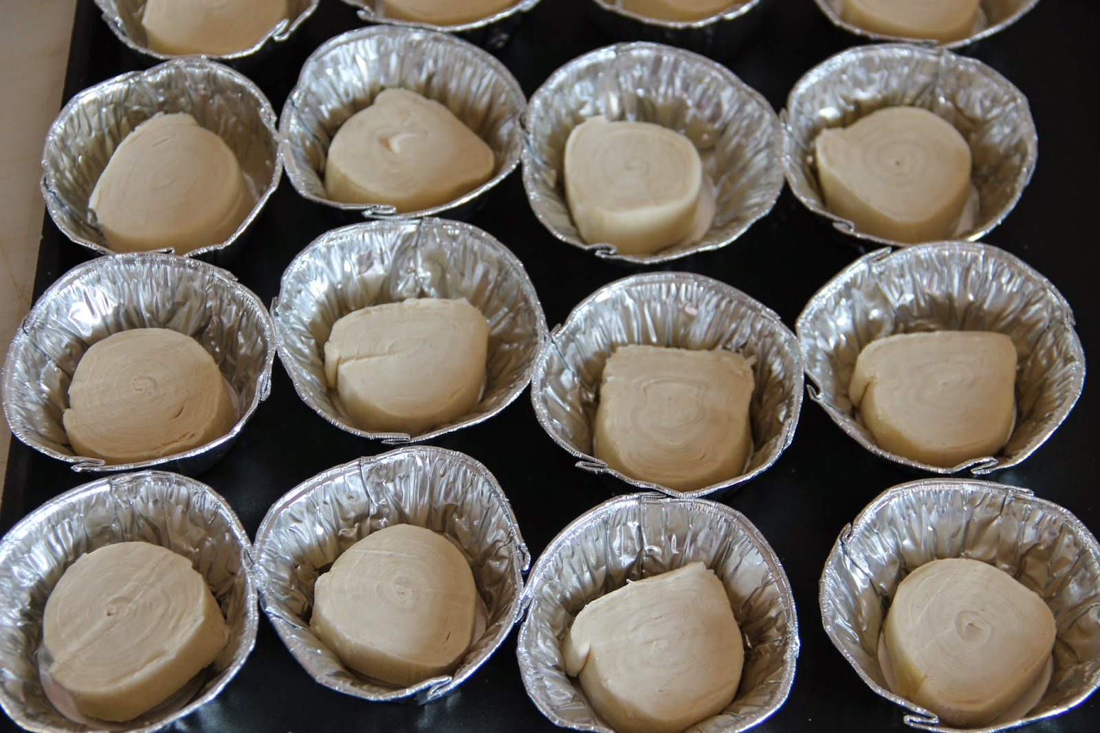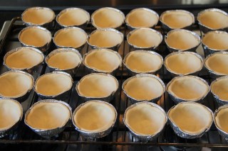 Placer les tranches à plat dans les moules à Pasteis.