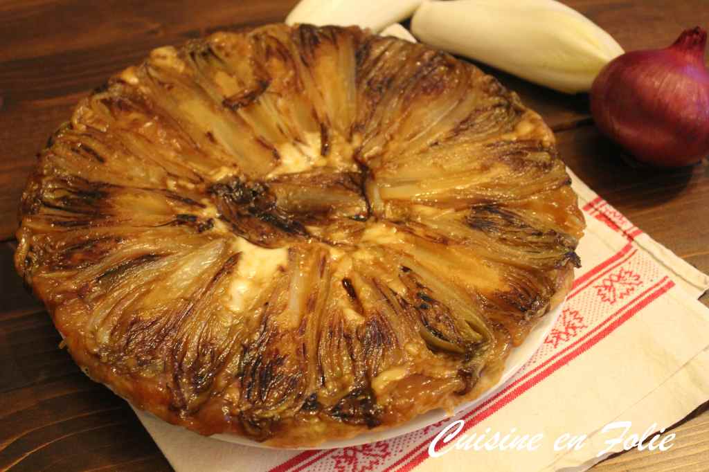 A la maison nos sommes des adeptes de la tatin d’aubergines que j’aime réaliser l’été, mais celle version à l’endive l’a détrônée en cette saison.