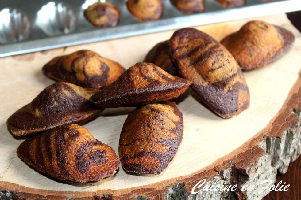 Ingrédients pâte vanille : – 1 gousse de vanille – 1 œuf – 50 g de sucre – 50 g de beurre fondu – 1 cc de miel – 55 g de farine – 1 cc de levure chimique   Fendre la gousse de vanille en deux et gratter les graines. Mettre dans… Lire la suite Madeleines marbrées de Cyril Lignac