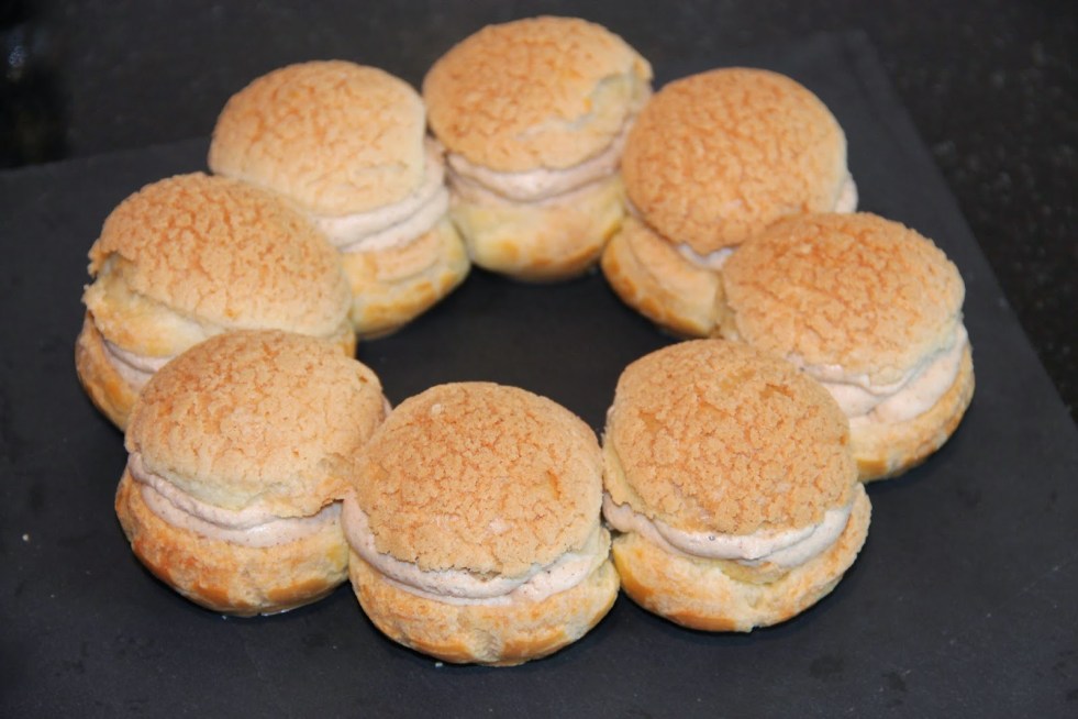 Chantilly mascarpone, salidou, pommes caramélisées au beurre salé, noix de pécan caramélisées. Craquelin : – 100 g de farine – 100 g de cassonade – une pincée de fleur de sel – 80 g de beurre doux à température ambiante Dans un récipient, mélanger ensemble la farine, la cassonade et la fleur de sel Ajouter le beurre… Lire la suite Paris-Brest revisité